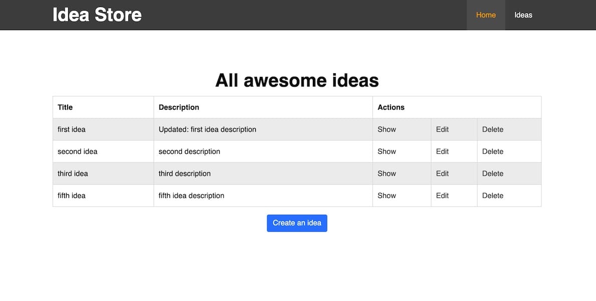 One nice change to existing application would be to add a button to create new idea right from home page and also from ideas list page as well.
