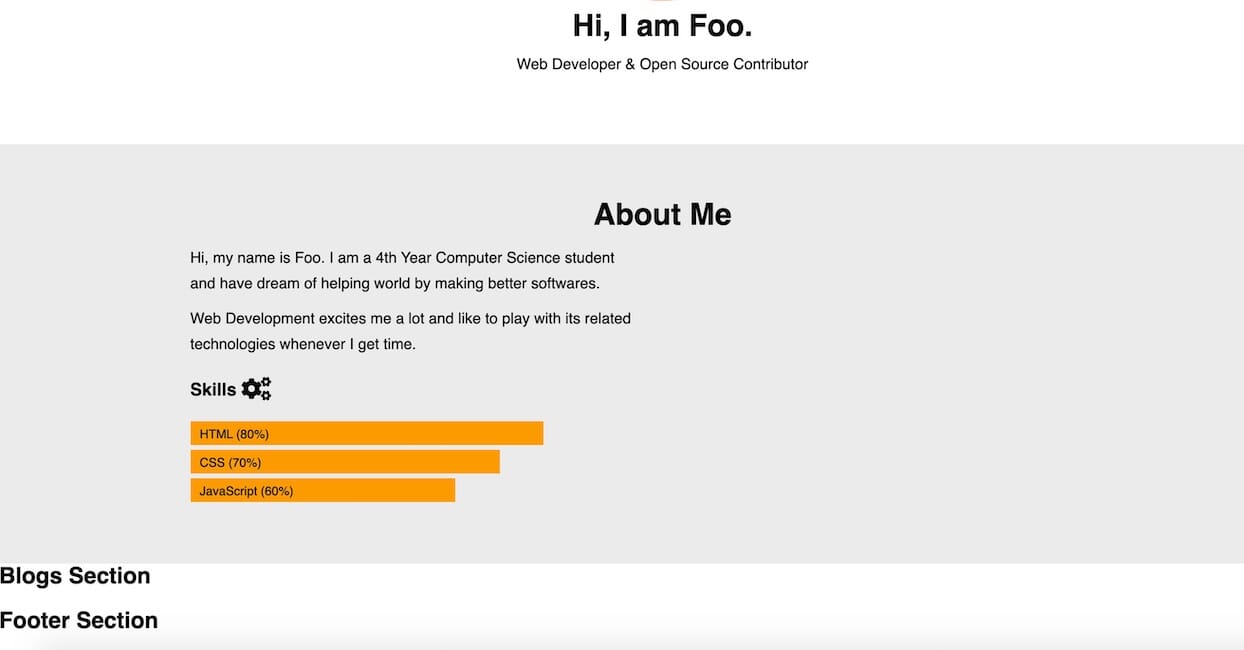 NOTE: Remove the <h1>Student Portfolio Skeleton</h1> and <h2>Navbar Section</h2> lines.