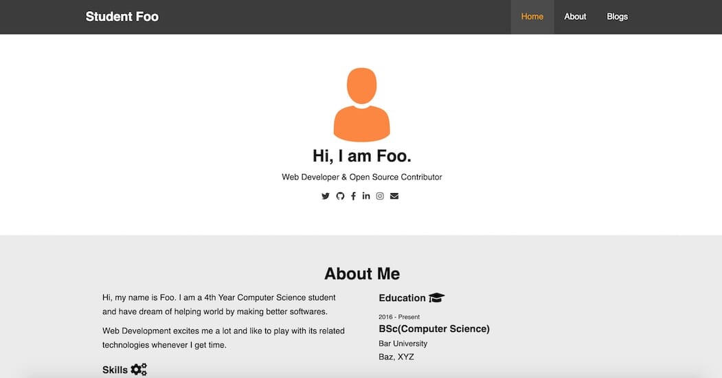 We will build a simple Student Portfolio website in this tutorial. A student portfolio website acts as a way to introduce a student to anyone in the internet and help showcase his or her skills.